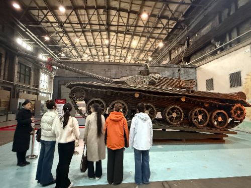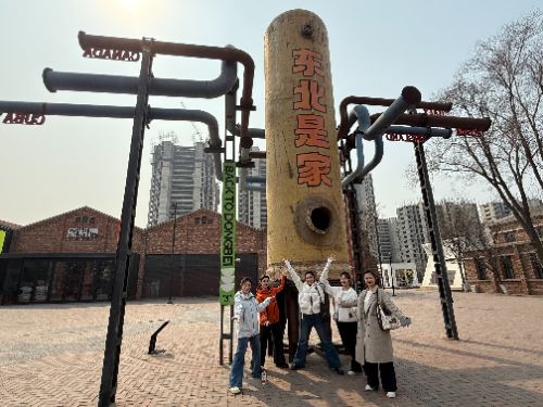 1月26日,團隊前往中國工業博物館,在專業講解員的引導下系統梳理遼寧工業發展脈絡。從“一五”時期的鞍鋼建設到改革開放后的產業轉型,學生們在展陳細節與歷史敘事中,記錄下大量真實可感的歷史片段與人物故事。團隊成員特別關注工業發展歷程中涌現的勞模精神、工匠精神等精神符號,將其作為語料庫“情感與精神庫”模塊的重要構建來源。此外,博物館展陳中蘊含的典型人物原型、時代場景與沖突張力,也為后續劇本生成提供了豐富的歷史素材與敘事框架。次日,團隊前往紅梅文創園、1905文化創意園等由老廠房改造的工業文化地標。通過實地走訪,團隊觀察到工業遺產在文創浪潮中如何通過內容更新煥發新生。園區相關負責人表示,老廠房的故事一直是游客關注的焦點,但如何將建筑背后的歷史轉化為常態化演藝內容,始終是運營中的難點。這一反饋進一步印證了項目在工業文旅場景中的市場價值。