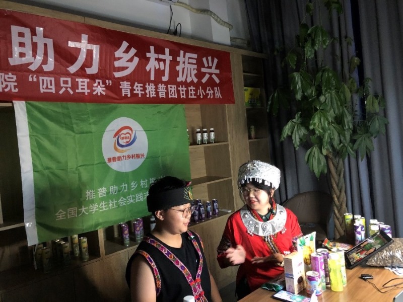 (團(tuán)隊(duì)成員和“推普小先生”正在直播介紹甘莊。)