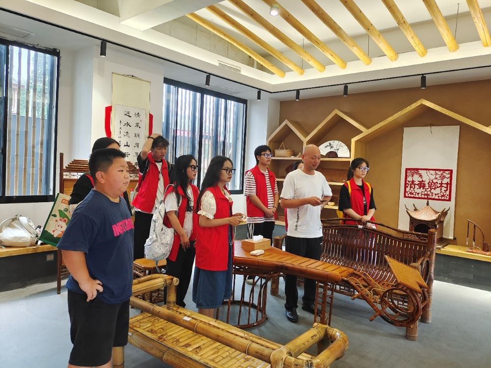 莫飛虎書記帶領我們參觀了大小郁竹工藝品展覽館和鄉村振興發展路線展覽館,通過莫書記的介紹,我們了解到大華村老一輩大多都是大小郁竹手藝人,在如今的科技信息時代,大華村也是緊跟潮流,運用直播帶貨等多種途徑宣傳銷 售大華村的竹產品,帶動經濟發展。