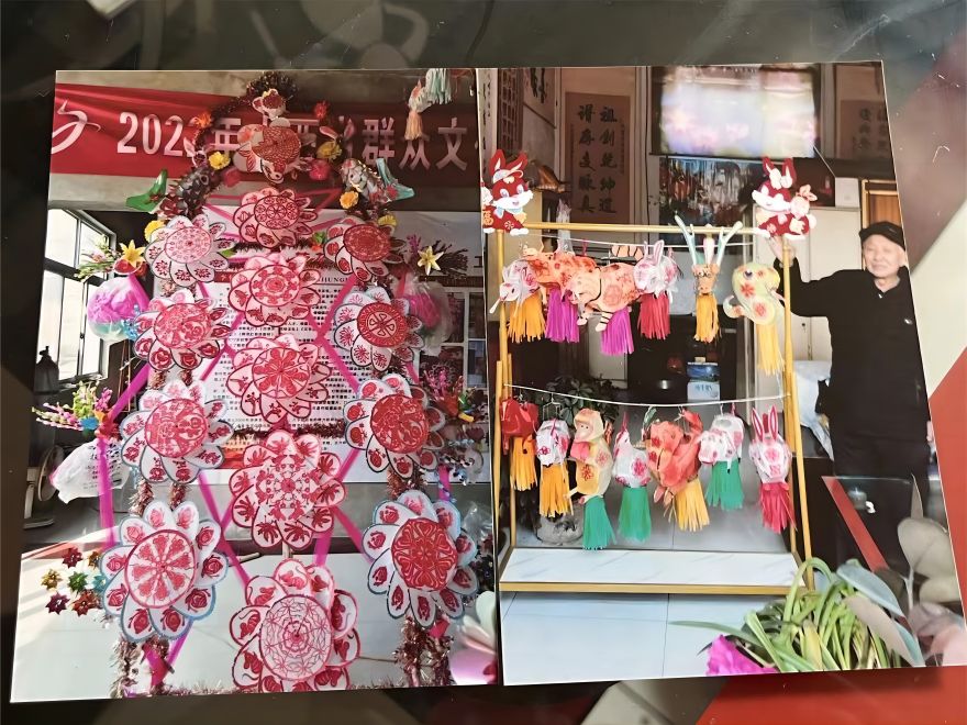 我們團隊前往李懷俊爺爺的家中拜訪。李懷俊爺爺對于我們的到來表達了極大的熱情。他告訴我們,轉花燈具有時代性,與時俱進。隨著人們觀賞水平的提高,轉花燈也在不斷的發展。最開始花燈其實是人們適應和改善生存環境所制作的這么一種夜間照明工具,但是當時我們全國的綠化條件很差,加上地理環境的原因導致我們當地夜間經常刮風,并且風很大。夜間出行的人們用燈籠照明時,大風常常會吹滅燈籠,給人們帶來極大的不便。所以當時的人們根據風大的這一特點制作了燈隨風動的燈籠,由此逐漸形成了當地獨特的民俗特色轉花燈。