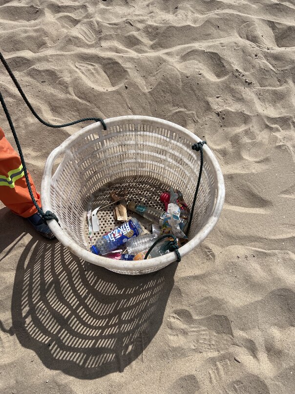 隨后團隊成員走訪了在沙灘的工作人員,在與環衛阿姨的交談中我們了解到了當地對于垃圾的處理全都是人工清掃,他們從早忙到晚上都在沙灘上清掃垃圾,但由于沙灘上的人流量過大,每日產生的各式各樣的垃圾也很多,因此環衛工人處理的垃圾大部分都是飲料瓶等較大的垃圾,無暇兼顧那些小的垃圾,但是那些垃圾對于整個沙灘甚至是海洋的生態都會產生一定的影響,還有些垃圾會在每天漲潮時從海面上帶來的一些垃圾,這些垃圾產生的任務量對于環衛工人來說是過大的。同時我們還了解到了環衛阿姨們對沙灘機器人的了解并不多。