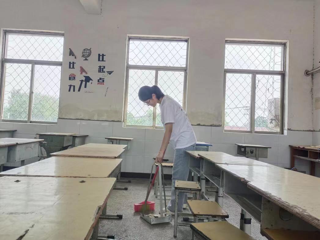 7月31日,支教隊成員在育英中學的校長及老師的帶領下安置行李,熟悉環境。8月1日上午,支教隊成員來到即將要開展支教活動的教室擦桌子、掃垃圾、擦黑板、搬動桌椅,在支教隊成員的共同努力下,教室煥然一新,為即將到來的學生提供了良好的學習環境。與此同時,支教隊成員前往顏莊、周樓、祝莊等村莊的村委會,聯系溝通招生的相關事宜。從8月1日下午到8月2日上午,許多村莊的家長帶著孩子來到育英中學的報名處,踴躍報名。