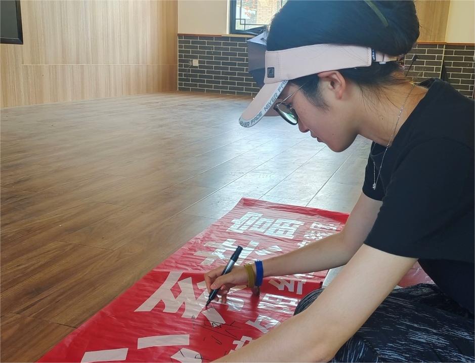 圖為實踐團隊成員在橫幅上簽名。