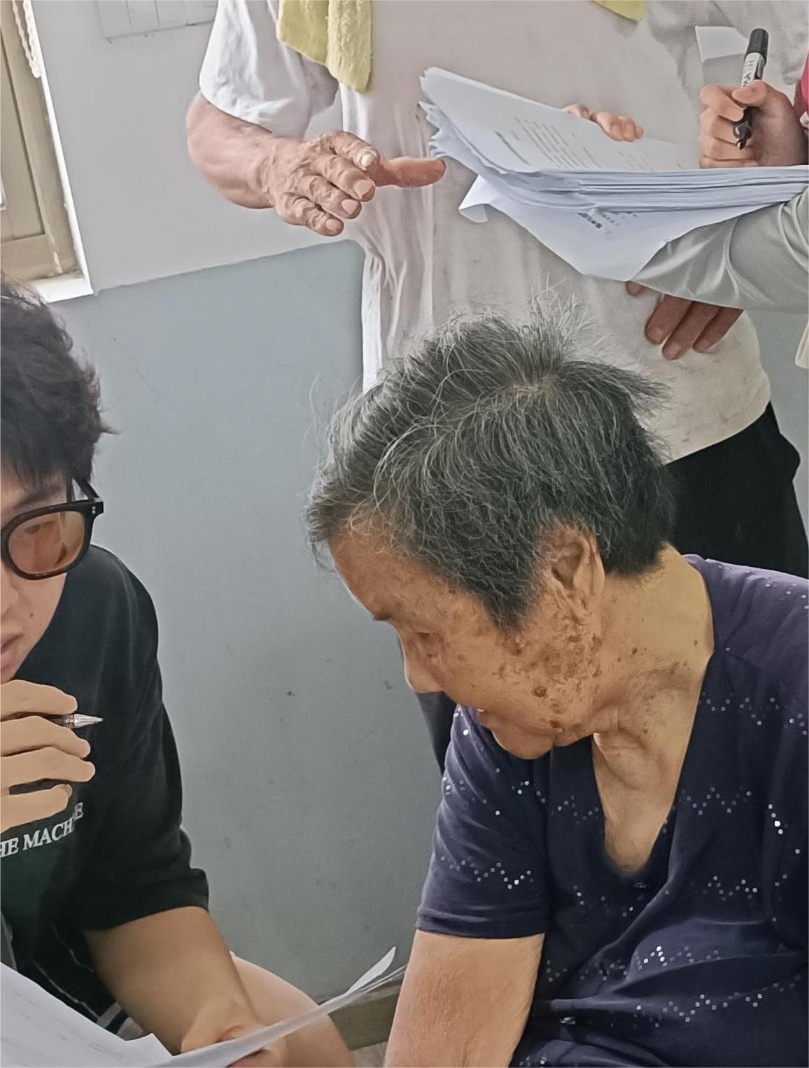 圖為實(shí)踐隊(duì)員對(duì)村民就村子滿意度方面進(jìn)行調(diào)研。
