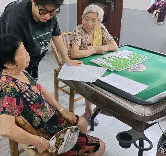 圖為實(shí)踐隊(duì)員在老年活動(dòng)中心對(duì)老人進(jìn)行問(wèn)卷調(diào)查。