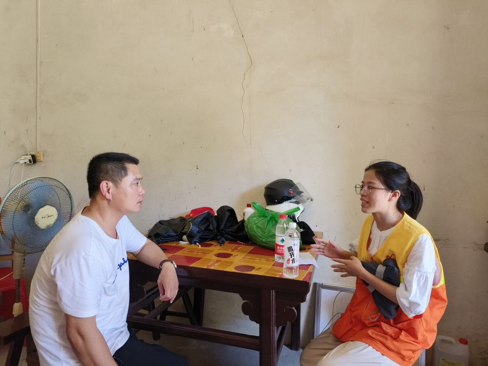 帶隊(duì)教師楊雅婷與村干部交流海亮村的發(fā)展成果