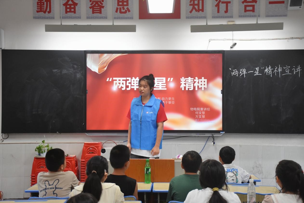 為進一步發揚和傳承“兩彈一星’精神,講好中國故事,激發青少年的愛國熱情和責任擔當,8月23日,吉首大學物理與機電與工程學院物語青年·小桔子陽光成長志愿服務團在吉首大學師范學院附屬小學教育集團砂子坳小學開展了“兩彈一星”精神宣講活動。
