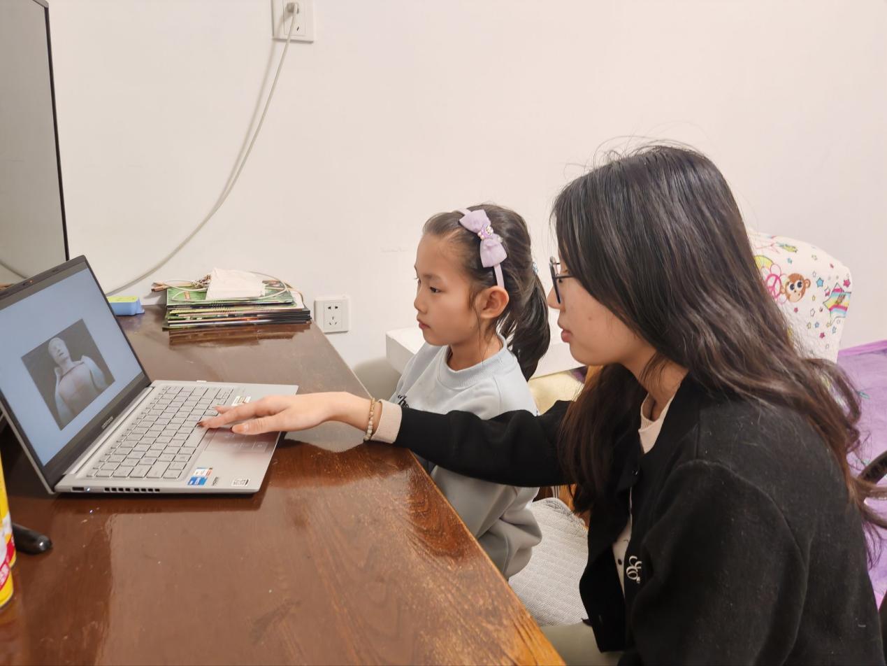 考慮到寒假期間家庭聚會增多、兒童意外風險升高,紀丹陽結合專業知識將心肺復蘇急救技能培訓作為此次實踐的重點內容。她結合護理專業知識,用通俗易懂的語言為孩子們講解心肺復蘇的重要性、適用場景及操作原理,通過模型演示清晰展示胸外按壓的位置、力度與頻率,細致拆解開放氣道、人工呼吸的標準流程。為了讓孩子們更好理解技能,紀丹陽著重強調操作中的關鍵細節與安全注意事項。孩子們在實踐操作中牢記急救要點,應對突發情況的自救互救能力得到顯著提升,也樹立了“安全第一、科學施救”的責任意識。