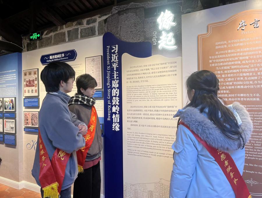 實踐隊走進鼓嶺歷史文化展示館,探尋“鼓嶺緣”的歷史故事。展館內,一幅幅畫面、一件件藏品,讓隊員們真切觸摸到鼓嶺故事的深厚底蘊與時代溫度,更對這段跨文化情誼的傳承發展有了全面認知。隊員們駐足“鼓嶺故事”專題展區,細研加德納與鼓嶺村民的交往點滴,以及近年中美青年在鼓嶺開展文化交流、研學互訪的活動記錄,深刻領悟到鼓嶺故事不僅是一段歷史佳話,更是中美民間友好的鮮活載體。