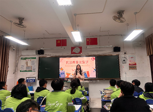 課堂上,同學們認真聆聽、積極思考,不僅掌握了與生活息息相關的法律知識,更增強了法治思維和自我保護意識。會后,班主任老師也結合自身經歷進一步提醒同學們在日常生活中,要將所學法律知識轉化為實際行動,時刻繃緊法治這根弦,既懂得用法律規范自身言行,守好做人做事的底線,也學會在面對權益受損、遭遇不法侵害等情況時,保持冷靜、沉著應對,通過合法途徑和正確方式維護自身權益。