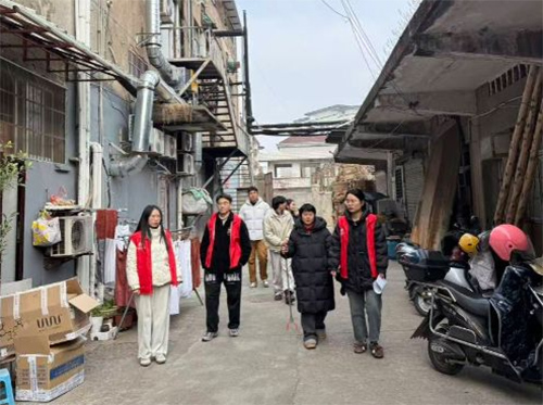 圖為實(shí)踐團(tuán)成員在社區(qū)看望老人