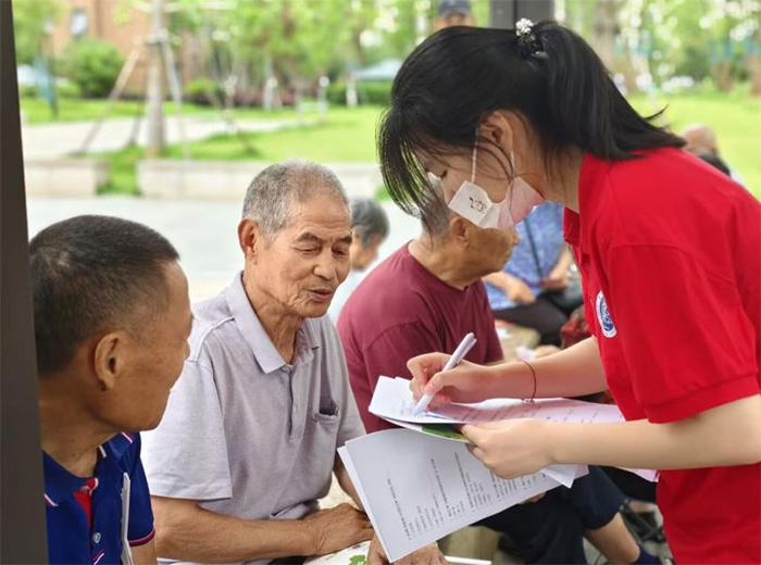 健康檢測筑防線,問卷調研集民情 清晨,團隊成員們兵分兩路,一組深入社區居民家中,為他們開展免費的健康檢測,用專業與溫情守護鄉村健康。敲開獨居老人周奶奶的門時,隊員們熟練地拿出血壓儀、血糖儀,一邊為老人測量,一邊輕聲詢問日常飲食和用藥情況。“您血壓有點偏高,平時要少碰腌菜,記得按時吃藥。”隊員耐心叮囑,還在健康檔案上仔細記下數據。與此同時,另一組團隊成員手持調查問卷,穿梭在人群中,與居民們親切交流。問卷內容圍繞居民的健康狀況、生活習慣、對腦梗等疾病的認知等方面展開,充分了解居民對基礎醫療的需求,為團隊后續的研究和分析提供了寶貴的一手資料,有效收集有效問卷80余份。