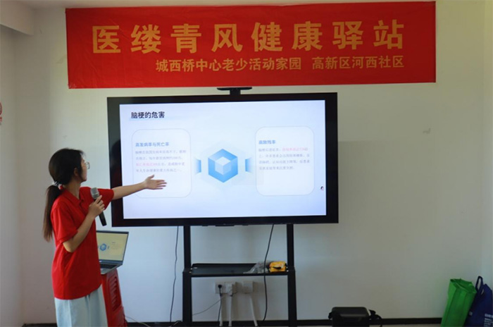 腦梗講座傳知識,健康理念入人心 午后,驕陽似火,但社區活動室內卻座無虛席。“醫路星火—橘井‘耘’四方”團隊精心準備的腦梗預防講座在這里火熱開講。團隊成員用通俗易懂的語言,結合生動的案例和圖片,為居民們詳細講解了腦梗的發病原因、癥狀表現、預防方法等知識。“腦梗是一種嚴重威脅中老年人健康的疾病,但它是可以預防的。大家要從控制血壓、血糖、血脂,合理飲食,適量運動等方面入手,降低腦梗的發病風險。”團隊成員深入淺出的講解,讓居民們對腦梗有了更深刻的認識。