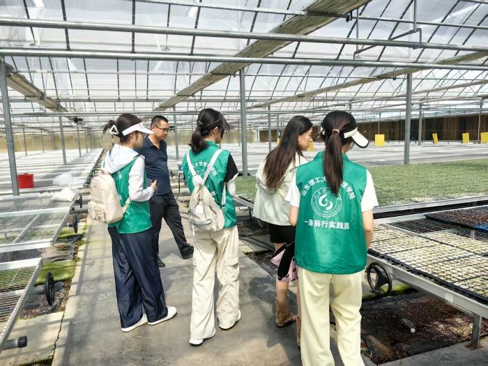 濰坊7月25日電(通訊員 郝源清)為助力鄉(xiāng)村振興貢獻(xiàn)青春力量,2025年7月日5,山東理工大學(xué)“一路前行”實(shí)踐團(tuán)赴“中國蔬菜之鄉(xiāng)”壽光市開展暑期“三下鄉(xiāng)”活動,實(shí)踐團(tuán)在隊(duì)長張藝錦的帶領(lǐng)下,重點(diǎn)考察了中國·壽光現(xiàn)代農(nóng)業(yè)高新技術(shù)試驗(yàn)示范基地,探索種子與幼苗全流程的奧秘。