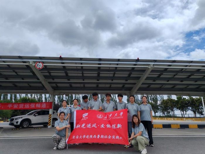 7月24日,長安大學赴陜西關中“馭光逐風·交能探新”實踐隊在指導教師李婉歆帶領下赴陜西橋底收費站開展調研實踐(共9名隊員),圍繞陜西交控綠色發(fā)展集團建設的屋頂光伏、車棚光伏及匝道環(huán)島光伏發(fā)電設施開展采訪與資料采集。