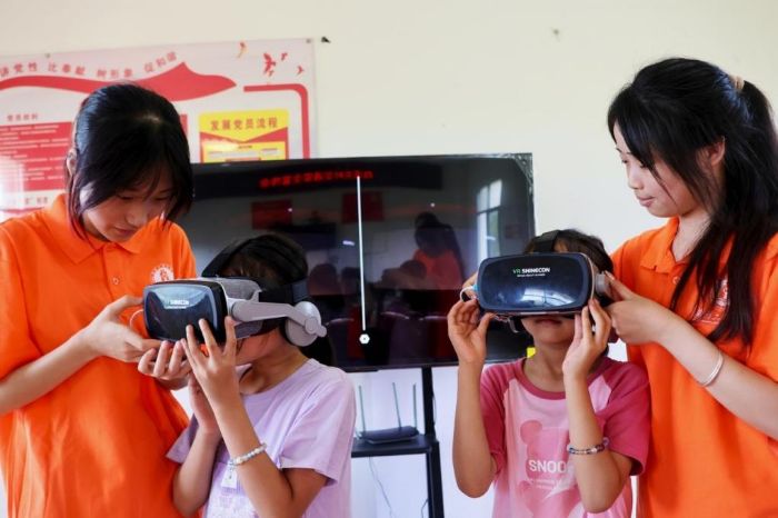 7月24日至25日,湖南工商大學(xué)“望山”青禾服務(wù)隊在湘西州古丈縣白溪關(guān)村黨群服務(wù)中心活動室,為當(dāng)?shù)厍嗌倌觊_展了以VR技術(shù)為載體的沉浸式體驗活動。作為“芙蓉學(xué)子·鄉(xiāng)村振興”公益計劃的重要實踐,活動以VR技術(shù)為支點,讓紅色故事可觸可感、家鄉(xiāng)風(fēng)貌可觀可嘆、安全防護可知可行,為當(dāng)?shù)厍嗌倌甑某砷L之路增添了一段獨特的科技記憶。