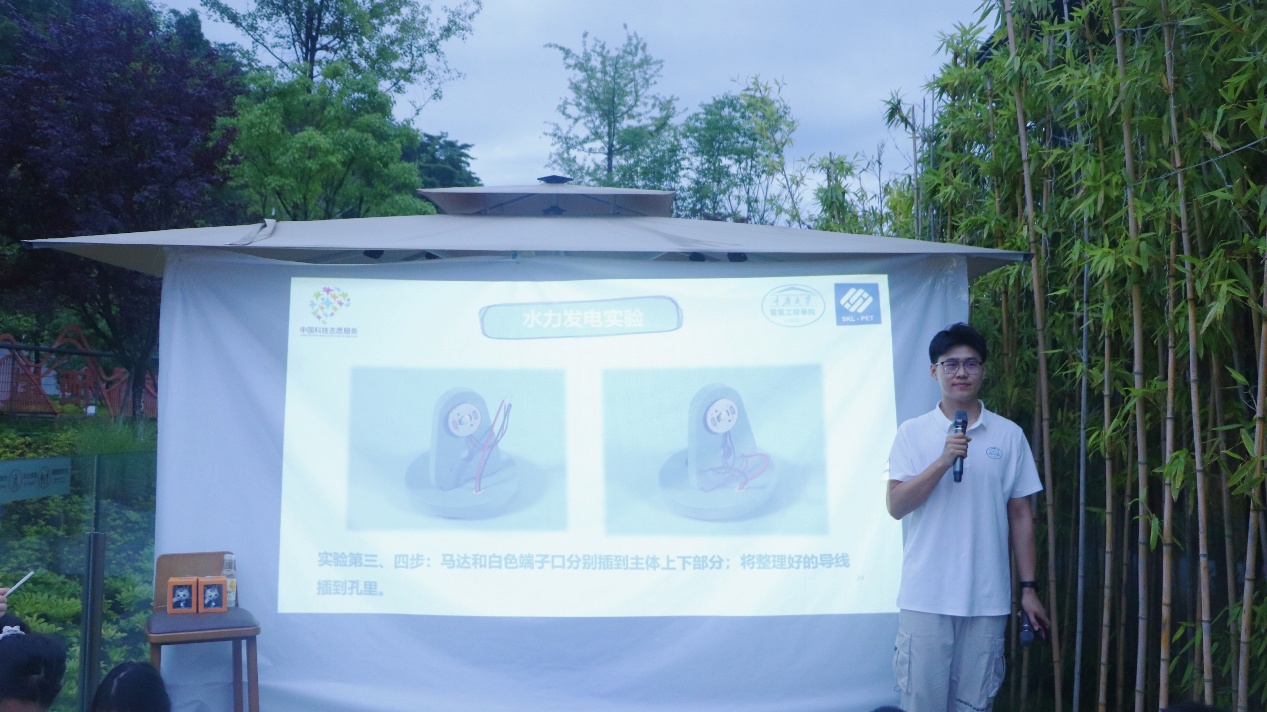 “亮了!水真的能發電!”7月21日的重慶市武隆區仙女山街道仙山里國際文旅生活小鎮廣場上,隨著一道水流沖擊葉片,LED燈泡亮起晶瑩光芒。孩子們清脆的歡呼聲劃破夏夜的寧靜,重慶大學“智創鄉行”暑期三下鄉社會實踐團的水力發電科普課,正用奔涌的水花在鄉村兒童心中澆灌科學夢想。