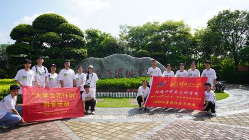 圖為實(shí)踐團(tuán)全體成員在那考河濕地公園石碑前合影(通訊員 韋覃菲 攝)