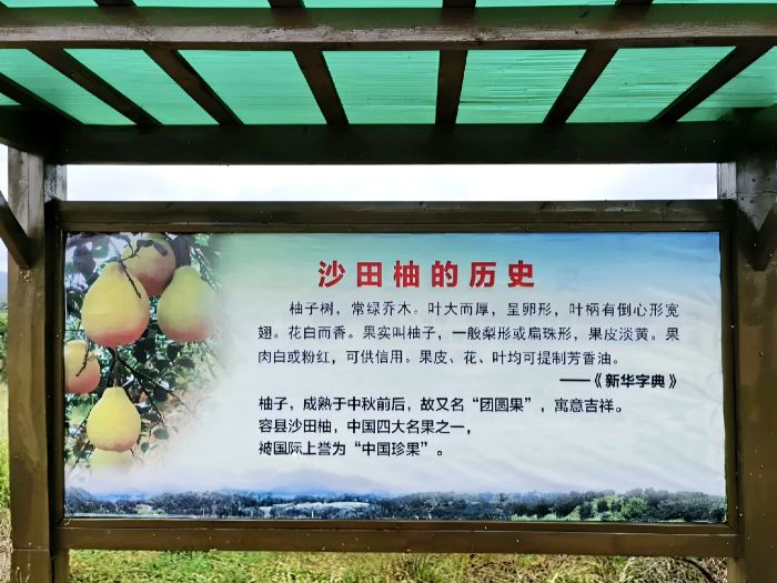 “農品新生”調研隊跟隨種植基地負責人步入沙田柚歷史發展露天博物館。隊員高美琦向博物館講解員詢問道:“為何沙田柚能作為玉林市容縣特色農產品,并且長久不衰呢?”在講解員引導下,調研隊成員們了解到沙田柚能在容縣長久興盛,得益于得天獨厚的自然條件與持續創新的產業發展。隨著講解員的講解,團隊成員進一步深入了解到玉林作為沙田柚重要產區,其種植歷史可溯源至明清時期。彼時,沙田柚便以優良品質脫穎而出,成為朝廷貢品,聲名遠播四方。館內豐富的文獻資料,從品種演變到種植技術傳承,均有詳細記載。隊員李凌志參觀后有感而發:“每一件展品都不是孤立存在,它們背后是沙田柚與玉林人民生活深度交融的深厚情感紐帶。” 此次參觀,為調研隊后續深入研究沙田柚產業發展,提供了寶貴的歷史維度參照。