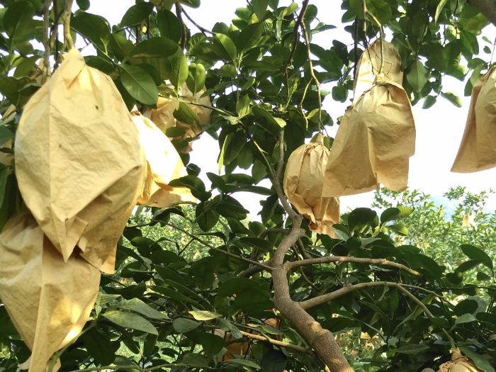 “農品新生“調研團隊調研首站步入廣西農科院沙田柚智慧種植示范基地,團隊成員親身體驗農業科技的魅力,連片的沙田柚樹套著黃色的袋子讓隊員們充滿好奇,隨著種植基地負責人的腳步,調研隊來到了沙田柚樹下,隊長黃詩怡向負責人問道:“為何沙田柚都用黃色的袋子包裹住?這樣做有什么作用嗎?”種植基地負責人耐心詳細地回答套上黃色的袋子主要有四個用處,第一可以減少農藥污染,能有效阻隔農藥與果實直接接觸,降低果實表面的農藥殘留。第二改善外觀品質可以避免外界物質對果實的表面機械損傷,減少病蟲害叮咬。第三提高果品質量,可以減少果實受外界不良氣候的影響,降低裂果率,還能適當調節袋內溫度和濕度,利于果實糖分積累提高品質。第四可以降低成本,比如減少因病蟲害,機械損壞等導致的落果,提高果實的完好率和產量,從而在一定程度上降低了生產過程中的損失,間接降低了生產成本。聽完負責人的講解,隊員宋靜靜感嘆道:“原來小小的袋子,竟有如此大的作用。”同時其他的隊員也紛紛感嘆并從中學到了很多關于種植沙田柚的知識。