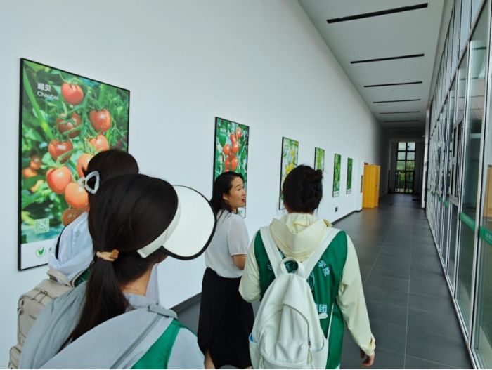 在負(fù)責(zé)人的帶領(lǐng)下,實(shí)踐團(tuán)首先走進(jìn)了集團(tuán)的研發(fā)中心,映入眼的是墻上懸掛的育種專家簡介。負(fù)責(zé)人介紹,集團(tuán)匯聚了國內(nèi)外頂尖育種人才,包括來自荷蘭、希臘的國際專家,以及國內(nèi)在茄果類研究領(lǐng)域頗具影響力的團(tuán)隊(duì),其中徐永士及其團(tuán)隊(duì)研發(fā)的西瓜、甜瓜品種廣受市場認(rèn)可。“我們的研究重心集中在茄果類蔬菜,像黃瓜、番茄、辣椒都是核心研發(fā)對(duì)象。”負(fù)責(zé)人指著實(shí)驗(yàn)室里的設(shè)備說道。實(shí)踐團(tuán)了解到,研發(fā)中心配備了385套先進(jìn)設(shè)備,總價(jià)值約一億元,為種子研發(fā)與檢測提供了堅(jiān)實(shí)的硬件支撐。從種子雜交組合到果實(shí)、葉片檢測,科研人員在這里開展著細(xì)致入微的研究工作,不斷探索優(yōu)質(zhì)品種的培育方法。