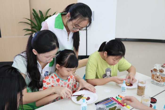農耕文化系列課程的設計和開發,對設計的研學課程進行落地,在惠州博羅黨群服務中心和承糧陂村開展理論實踐課堂。理論課堂上,隊員們開展《米飯成長記》繪本閱讀課,講述了水稻從育種、插秧到抽穗、收割的生命周期,使孩子們理解“粒粒皆辛苦”的含義;設計“我是小農夫”情景表演,學生分別扮演稻苗、青蛙、螟蟲和稻草人等角色,了解農田生態系統;進行“稻谷繪豐年”活動,提高學生美育和創造力。