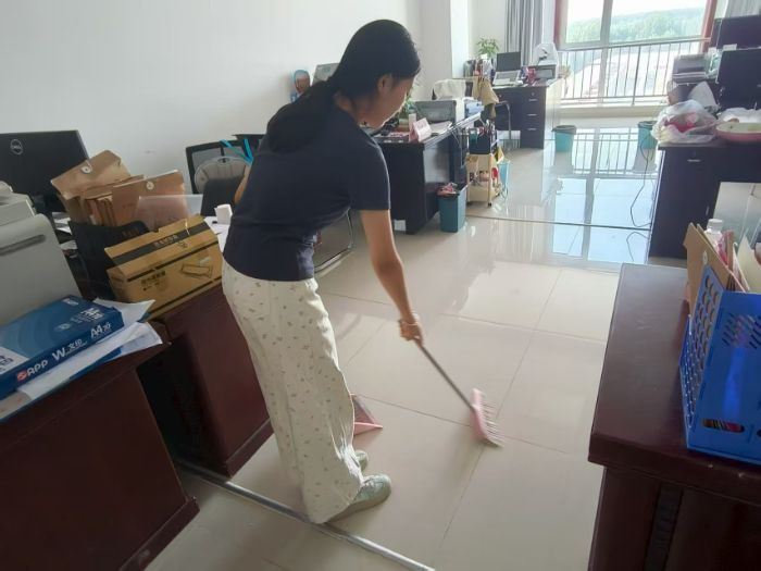 實踐初期,為了使辦公人員有更良好舒適的工作環(huán)境,實踐團成員積極承擔起打掃辦公室衛(wèi)生的任務(wù),認真清掃地面,為后續(xù)實踐工作開展營造了整潔有序的氛圍。以實際行動開展實踐,展現(xiàn)服務(wù)熱忱。