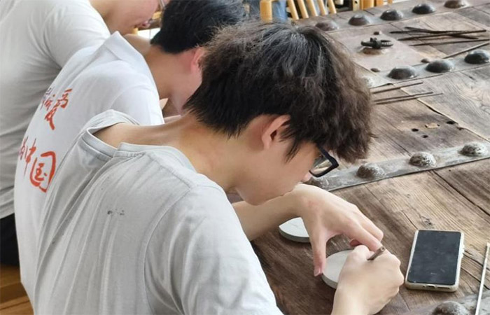 雕琢時光之美:在指尖傳承非遺溫度 實踐團走進竺塢山房,懷著熱忱與期待,向徐老師虛心求教雕刻技藝,感受雕刻藝術的精妙。
