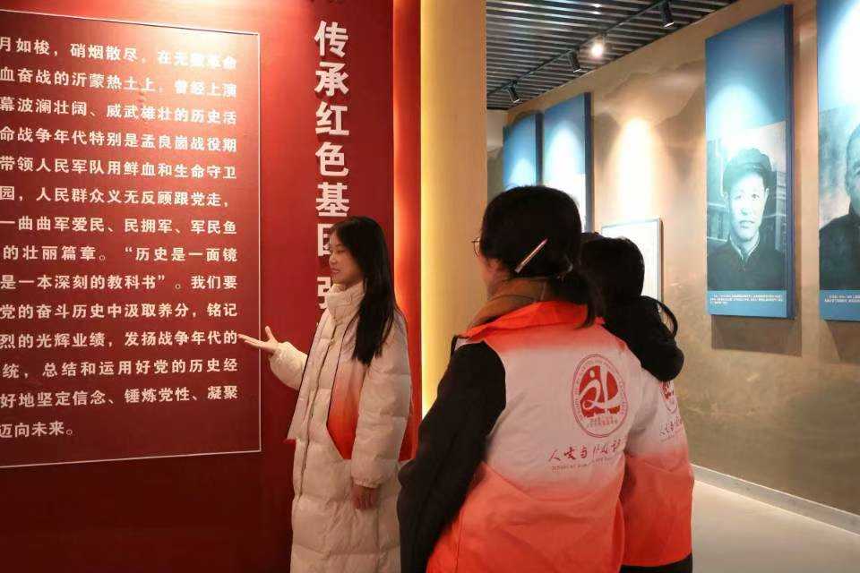 二、孟良崮戰(zhàn)役紀(jì)念館:銘記戰(zhàn)役輝煌,傳承勝利基因1月9日,團(tuán)隊(duì)成員共同參觀了孟良崮戰(zhàn)役紀(jì)念館。這里曾是解放戰(zhàn)爭(zhēng)時(shí)期一場(chǎng)著名戰(zhàn)役的發(fā)生地,也是沂蒙精神的重要發(fā)源地之一。進(jìn)入紀(jì)念館,大家首先被一幅巨大的戰(zhàn)役形勢(shì)圖所吸引。宣講團(tuán)成員文瀟宇結(jié)合形勢(shì)圖,詳細(xì)講述了孟良崮戰(zhàn)役的全過程。從戰(zhàn)役的發(fā)起、發(fā)展到勝利,每一個(gè)環(huán)節(jié)都充滿了智慧與勇氣。宣講團(tuán)成員們認(rèn)真聆聽,不時(shí)提問,對(duì)戰(zhàn)役的每一個(gè)細(xì)節(jié)都表現(xiàn)出了濃厚的興趣。